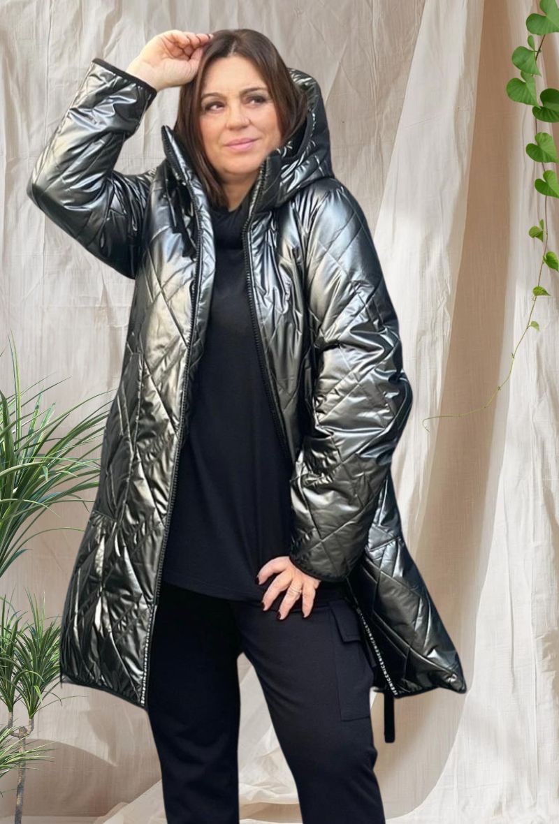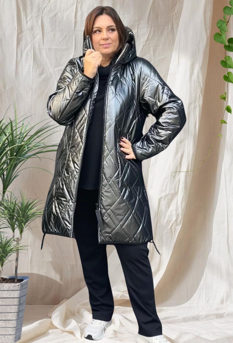 Parka acolchada ligera, no abultada, con capucha desmontable, cremalleras laterales y vivos en contraste. Su diseño moderno con acabado metalizado aporta un toque actual sin renunciar a la comodidad y al abrigo.