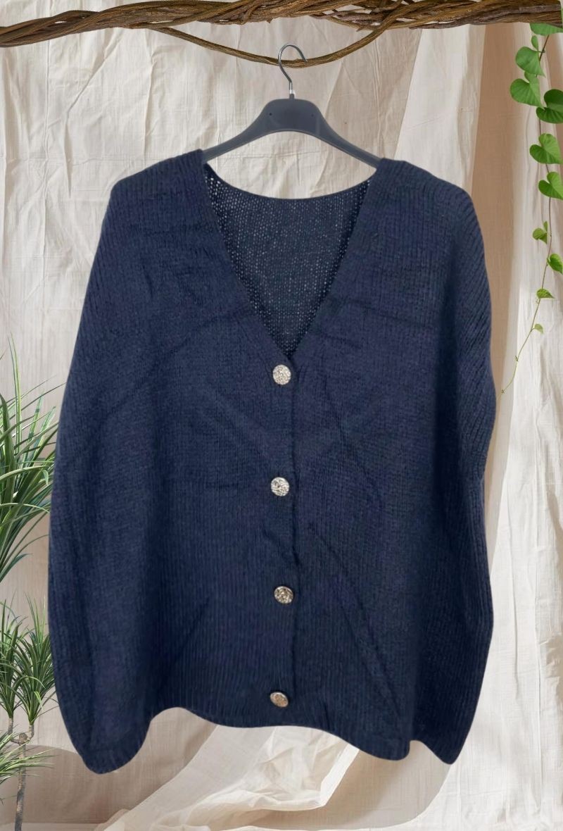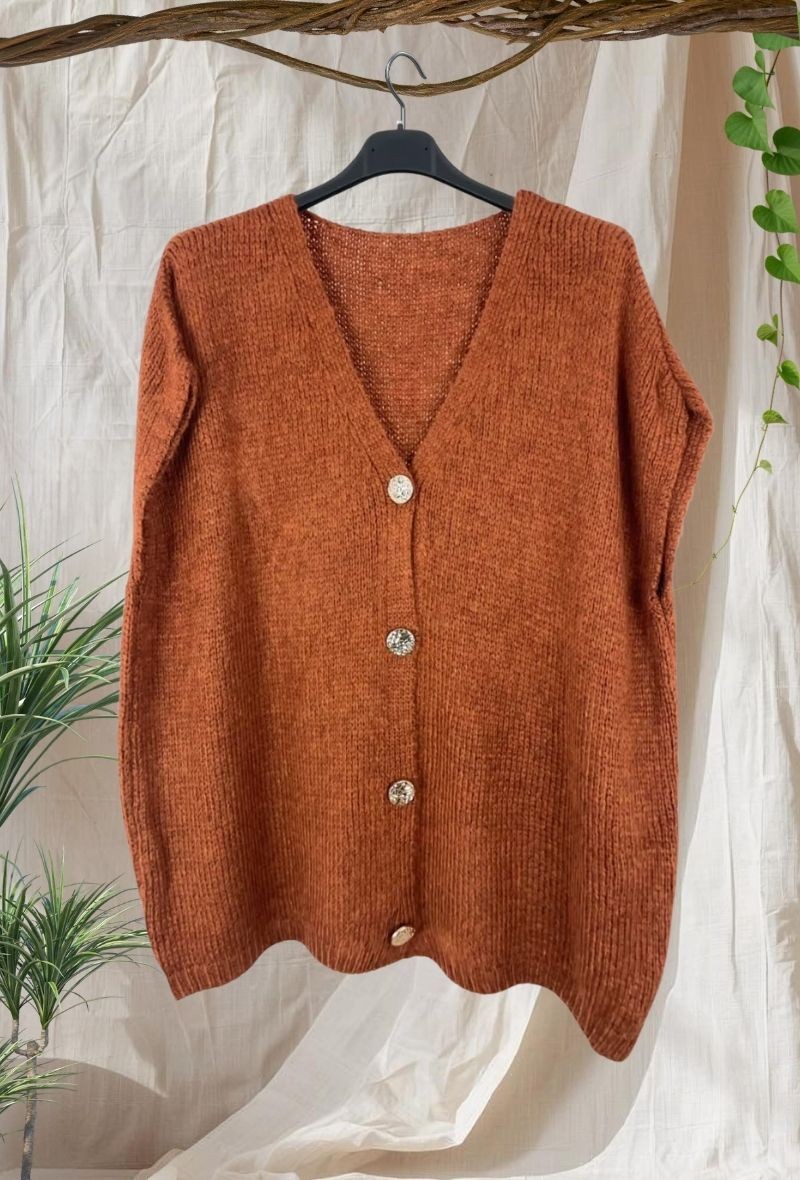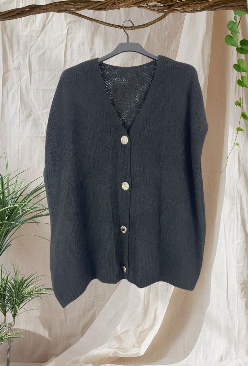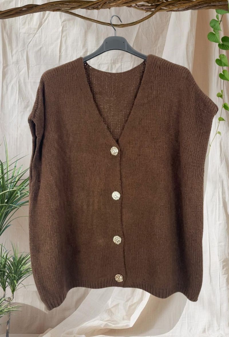 Chaleco de punto cálido y suave, sin mangas y cerrado con botones delanteros. Cómodo, versátil y perfecto para combinar con camisetas o blusas.