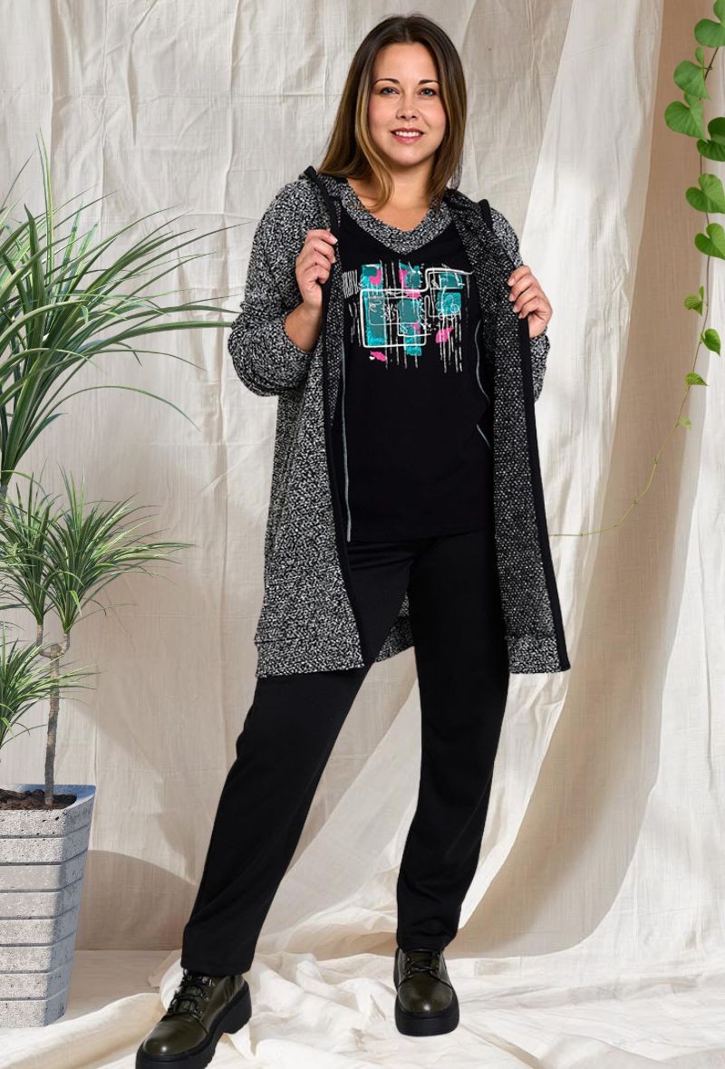 Chaqueta larga con capucha y bolsillos laterales, cómoda, moderna y versátil. Ideal para combinar con camisetas o jerséis en tus looks de diario.