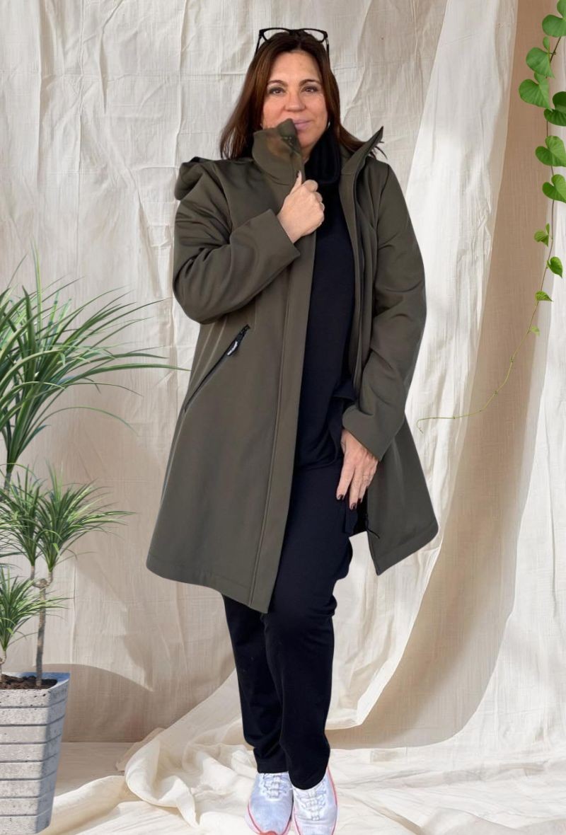Parka larga y ligera, con exterior cortaviento y forro interior cálido, sin resultar abultada. Dispone de bolsillos delanteros con cremallera y cierre frontal también con cremallera. Prenda funcional, cómoda y perfecta para el frío.