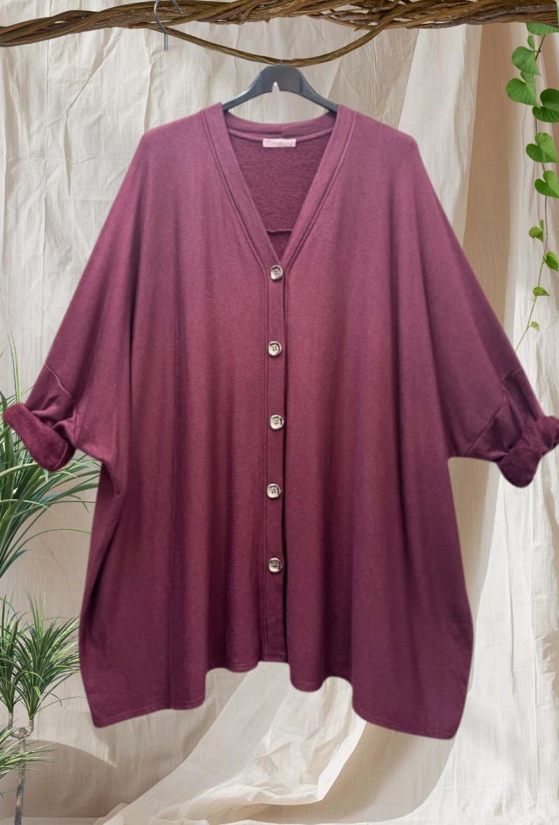 Cárdigan ultrasuave y extragrande, con botones delanteros, cuello en V y corte rectangular con hombros caídos. Lleva forro polar interior, ideal para ir calentita y cómoda.