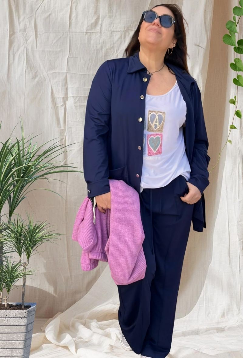 Chaqueta de punto fluido de la colección Indra, con corte amplio y muy favorecedor. Lleva bolsillos delanteros funcionales y un pliegue en la espalda que aporta movimiento y mayor comodidad. Tejido suave con caída elegante, ideal para combinar con pantalón a juego o looks más casual.