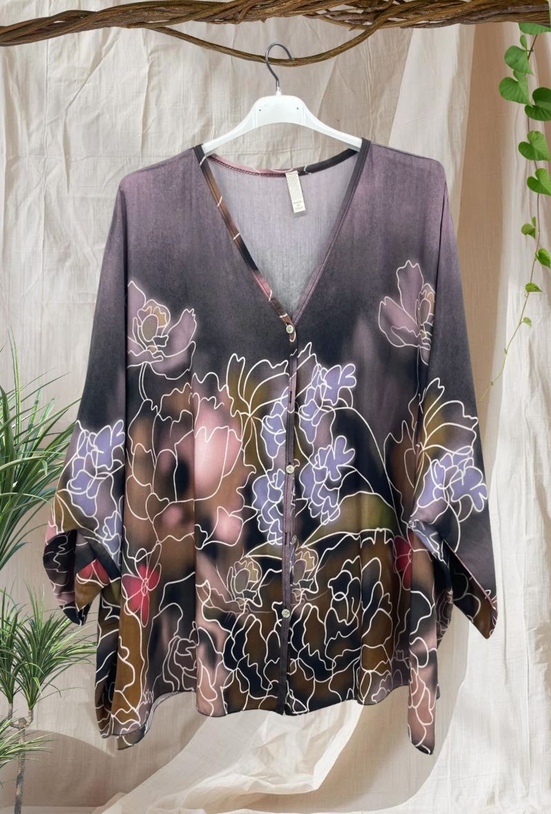 Blusa asedada con estampado en tonos vibrantes y caída fluida. Tejido ligero y suave que aporta un toque elegante sin renunciar a la comodidad. Corte amplio que favorece y estiliza.