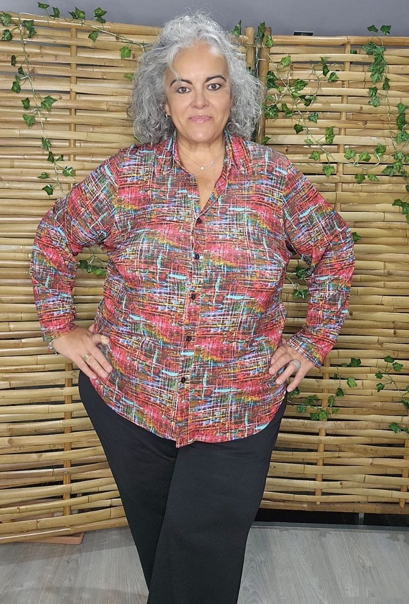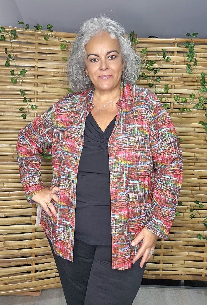 Camisa de punto elástico con botones delanteros y cuello con solapa. Su tejido cómodo y los estampados en tendencia la convierten en una prenda moderna y favorecedora.