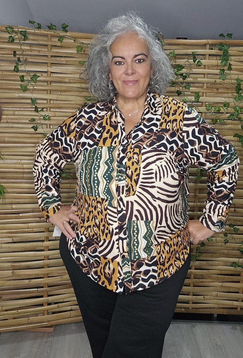 Camisa de punto elástico con botones delanteros y cuello con solapa. Su tejido cómodo y los estampados en tendencia la convierten en una prenda moderna y favorecedora.