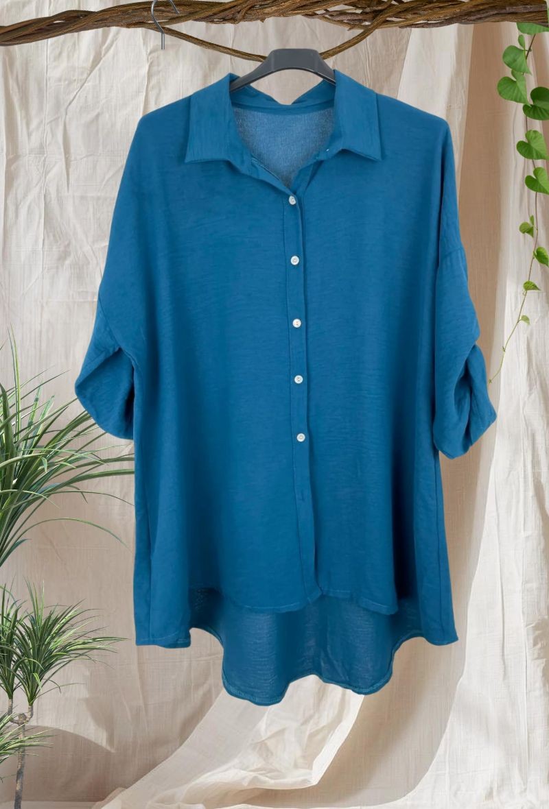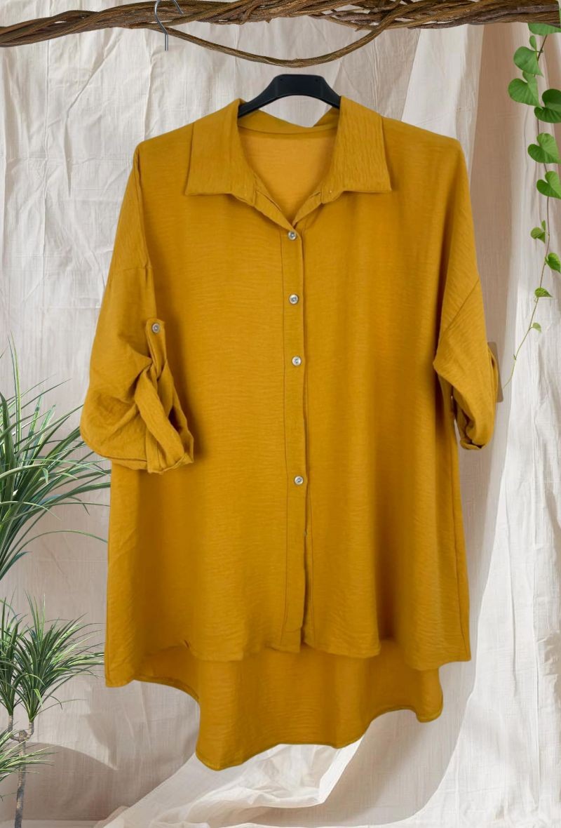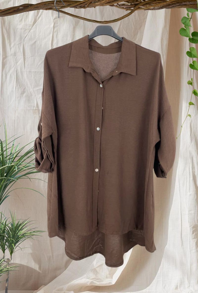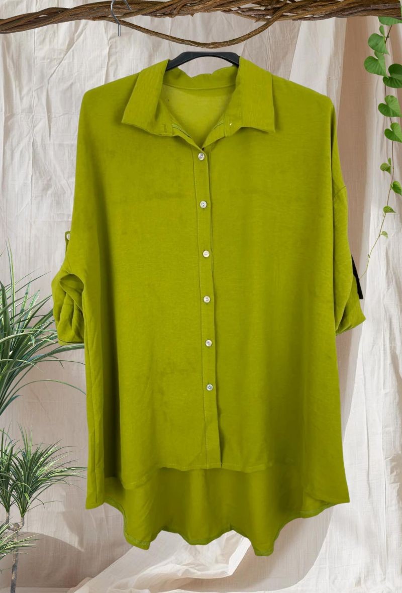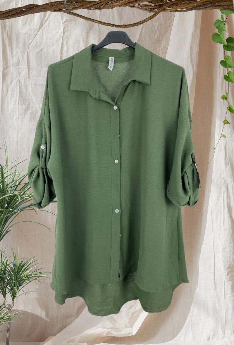 Camisa larga abotonada de tejido crepe súper suave, con mucha caída. Manga larga que puede recogerse a 3/4, ideal para looks cómodos y versátiles.