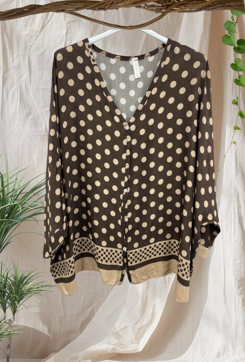Blusa asedada con estampado en tonos vibrantes y caída fluida. Tejido ligero y suave que aporta un toque elegante sin renunciar a la comodidad. Corte amplio que favorece y estiliza.