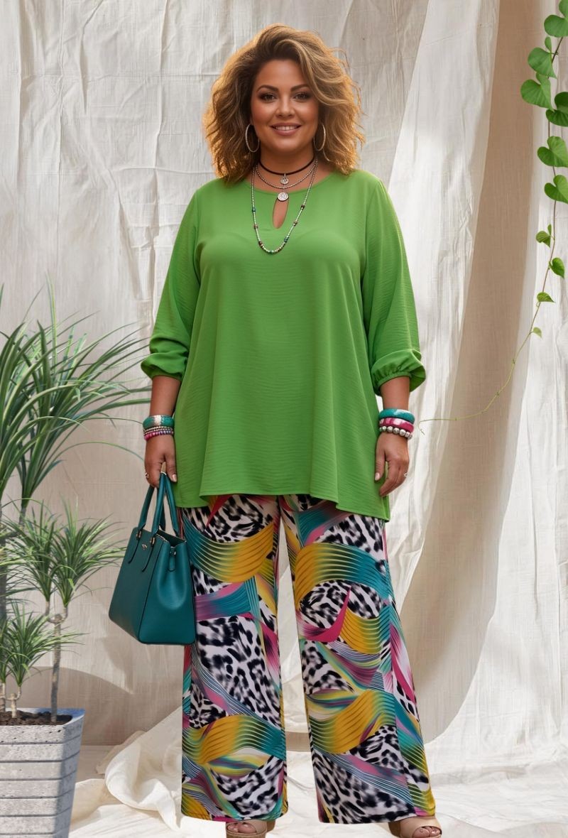 Túnica larga y fluida en crepé de viscosa suave, con escote de lágrima y botón joya