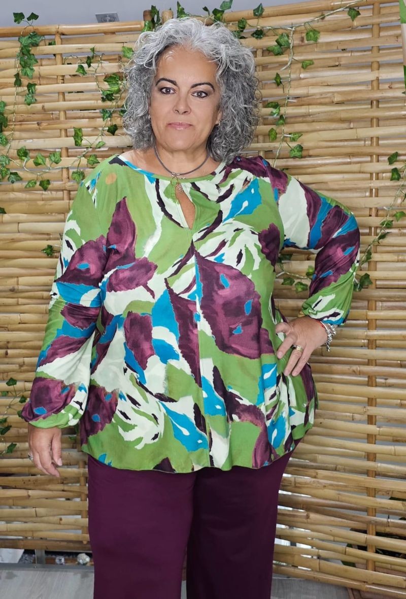 Camiseta estampada de cuello redondo con escote y manga larga con goma en el puño. Tejido de punto poliéster, cómodo y con buena elasticidad.