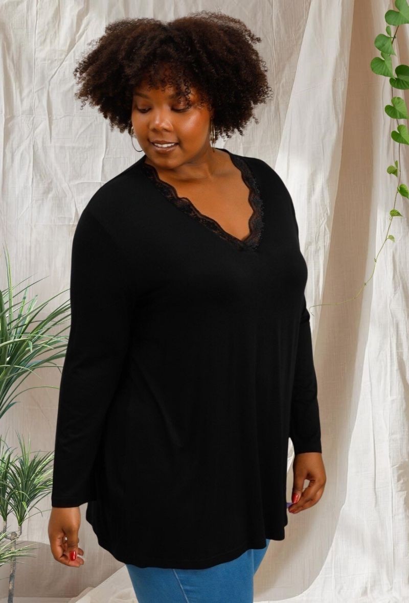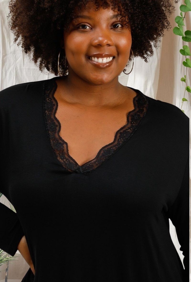 Camiseta básica de encaje, con cuello en V y tejido suave y elástico, ideal para otoño e invierno. Perfecta como prenda interior o para combinar con blusas y chaquetas.