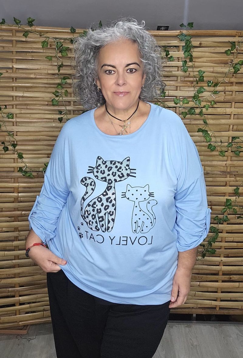 Camiseta de tejido suave y elástico, con estampado delantero divertido con brillo y diseño cómodo para el día a día.