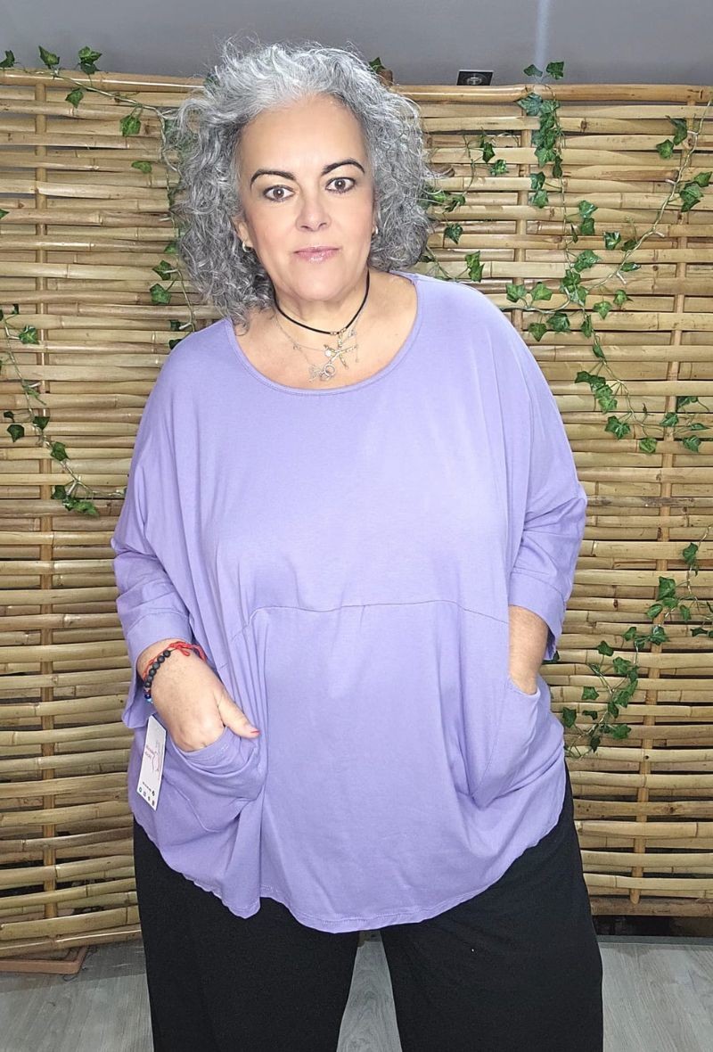 Camiseta de algodón, con diseño oversize y corte amplio, muy cómoda y favorecedora. Manga amplia estilo murciélago y caída fluida que estiliza sin marcar.