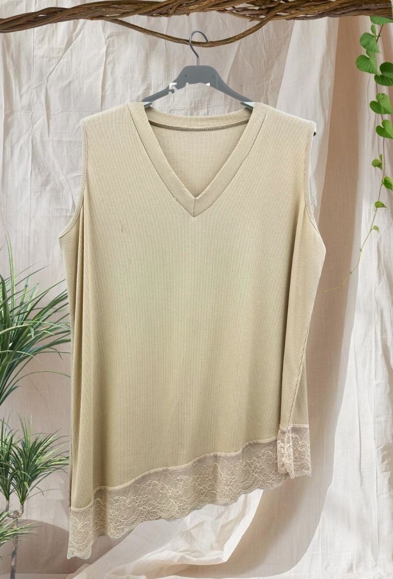 Top de punto fino con cuello en V y bajo con detalle de encaje que aporta un toque femenino. Ligero, cómodo y con caída fluida que no marca.