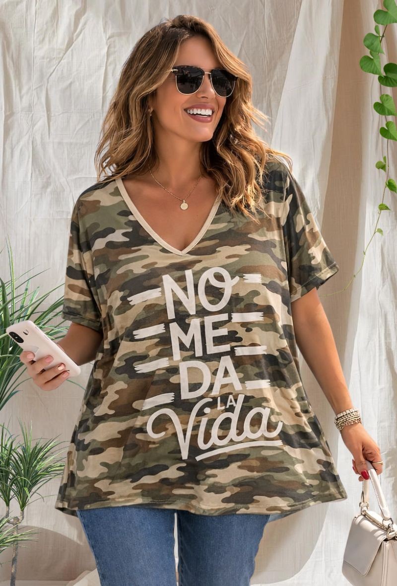 Camiseta de punto frío con estampado divertidos y caída fluida. Tejido ligero, fresco y con mucha elasticidad que se adapta perfectamente al cuerpo sin marcar.