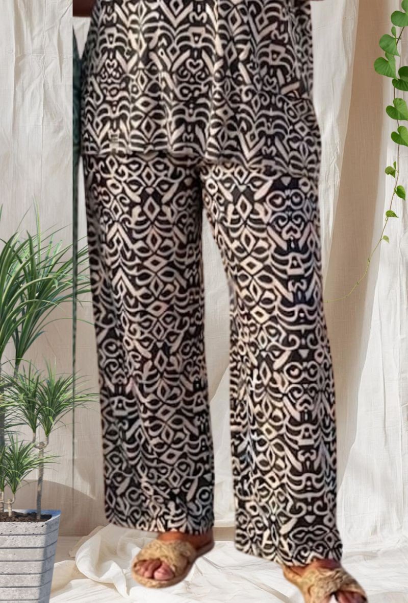 Pantalón fluido. Tejido ligero, fresco y con caída perfecta que no marca. Ideal para looks cómodos y con estilo.