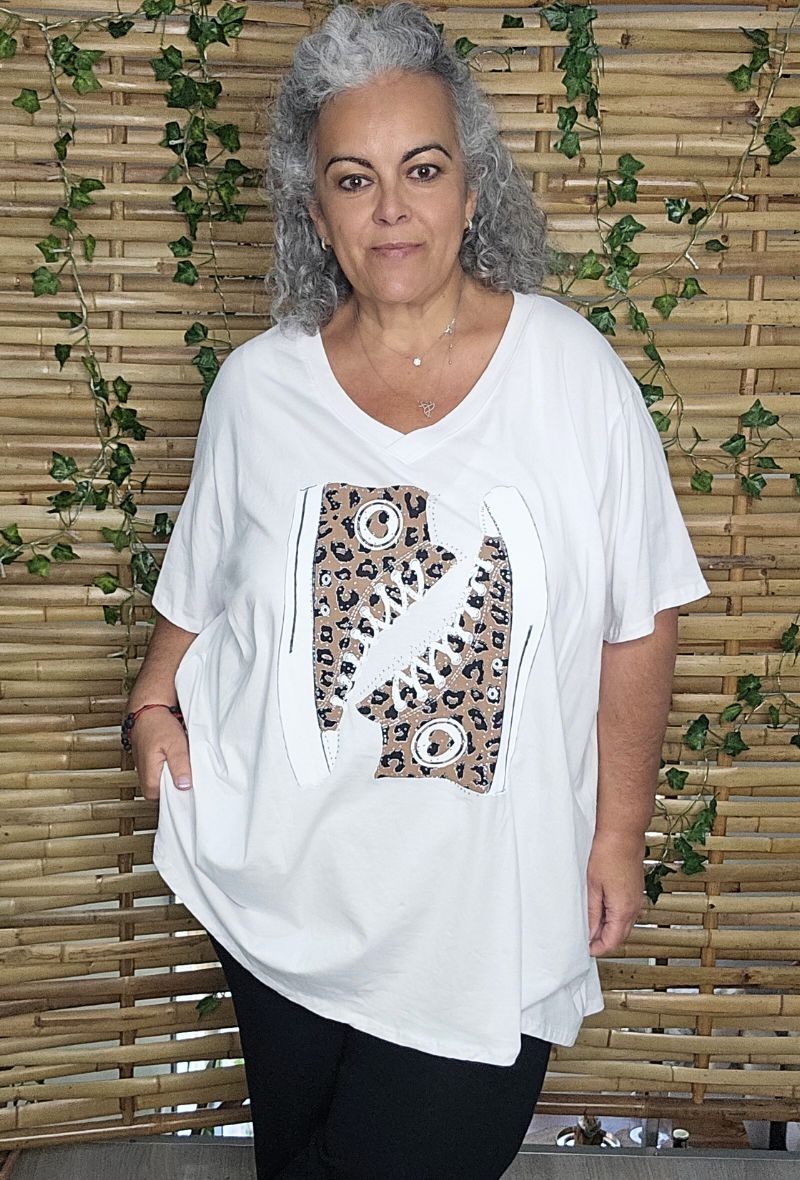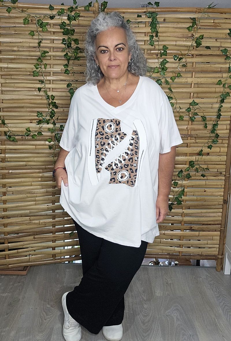 Camiseta de algodón con corte amplio y cómodo, perfecta para el día a día. Destaca su original estampado frontal que le da un toque moderno y desenfadado. Su tejido suave y ligero la convierte en una prenda súper agradable de llevar.
