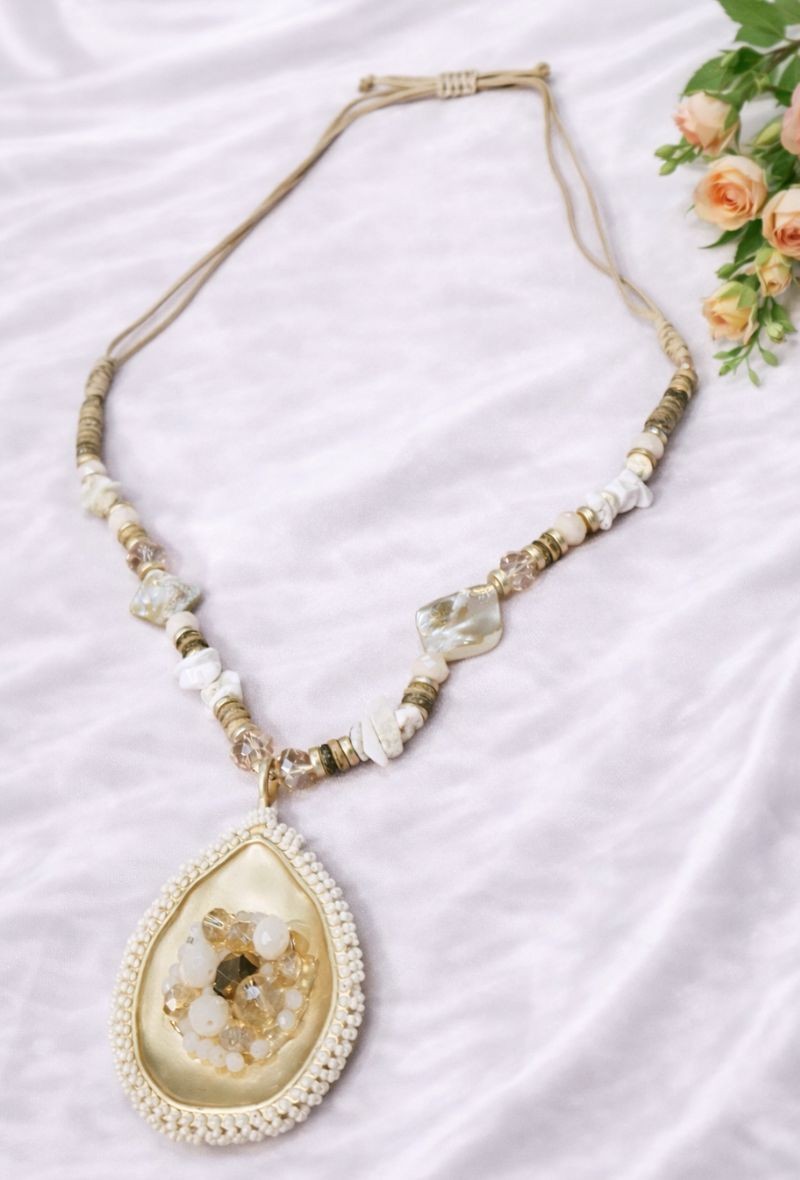 Colgante combinado en piedra y cordón.