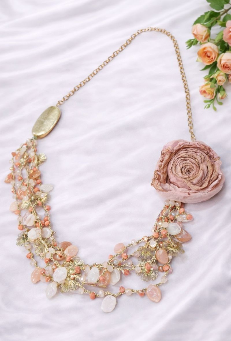 Colgante dorado y rosa nude con flor lateral