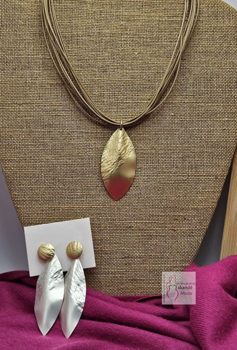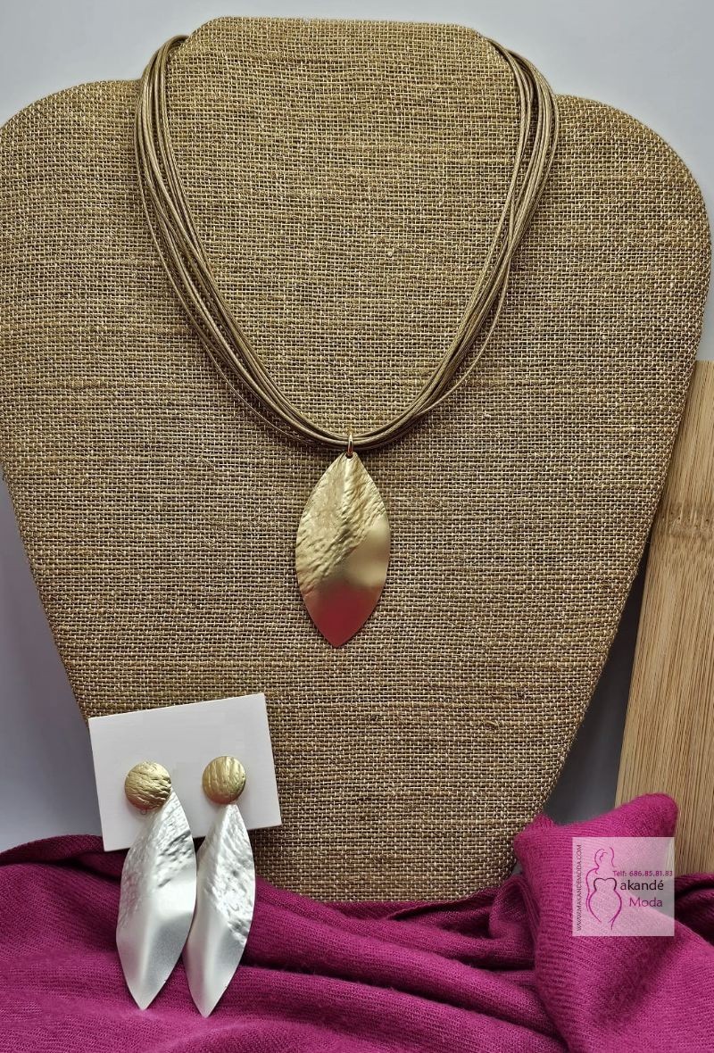 Colgante cordón (dorado), con hoja alargada con textura dorada, gran calidad.