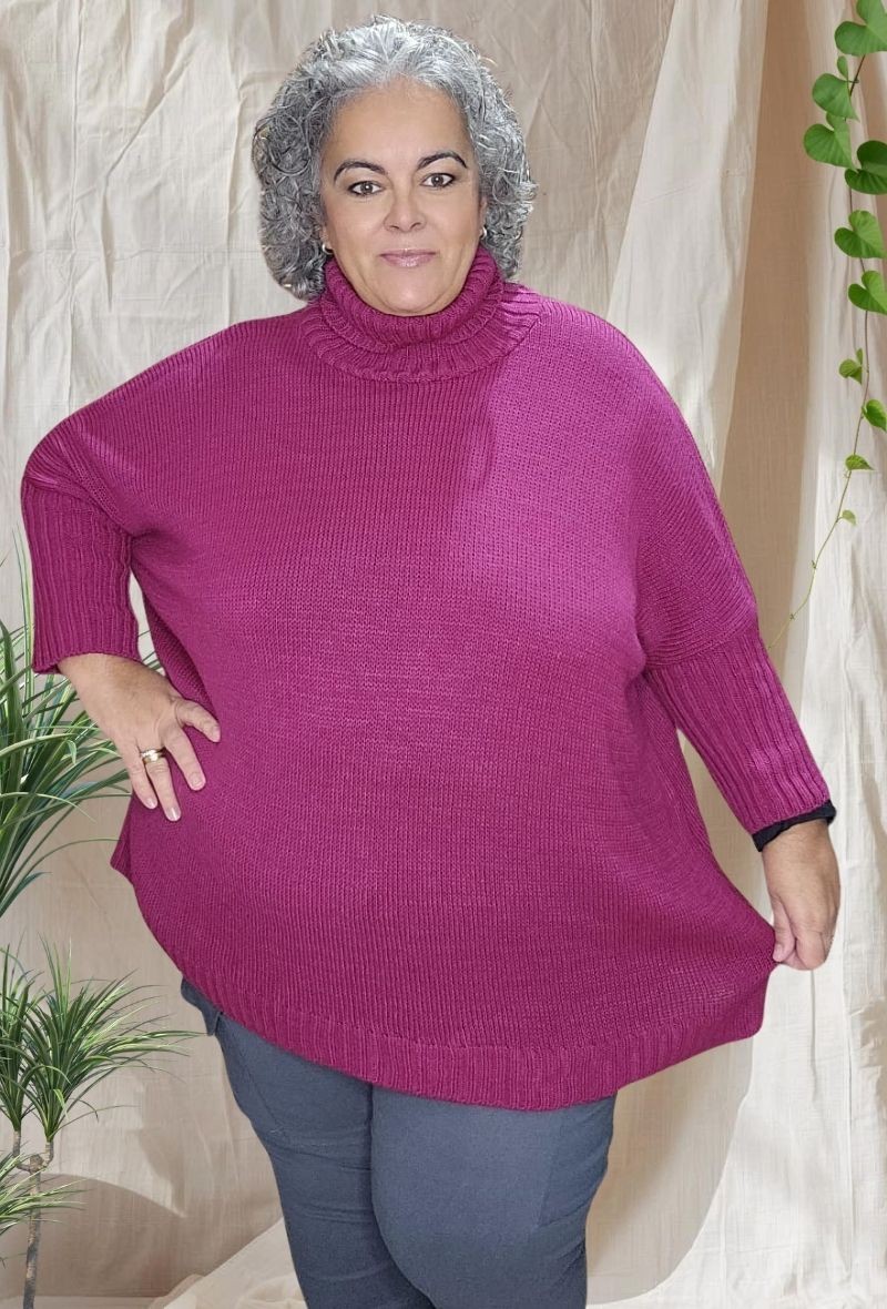 Jersey oversize cuadrado, cuello alto, punto gordito y suave.