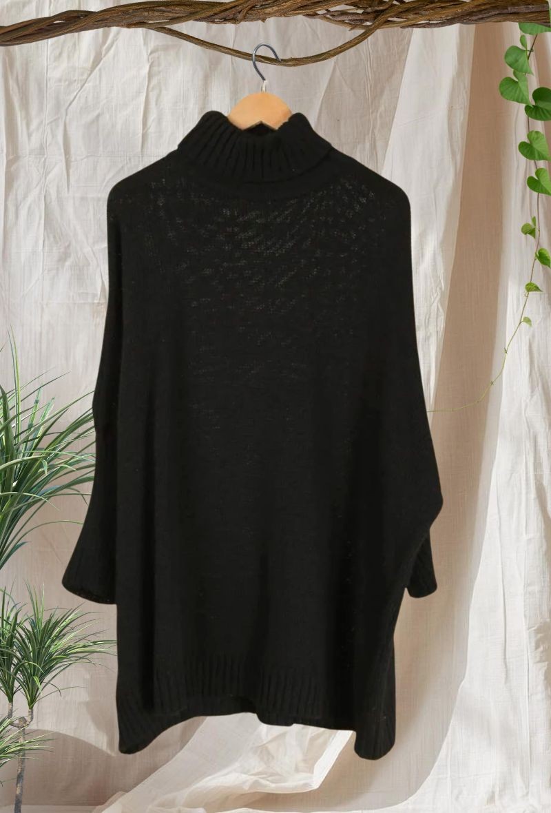 Jersey oversize cuadrado, cuello alto, punto gordito y suave.