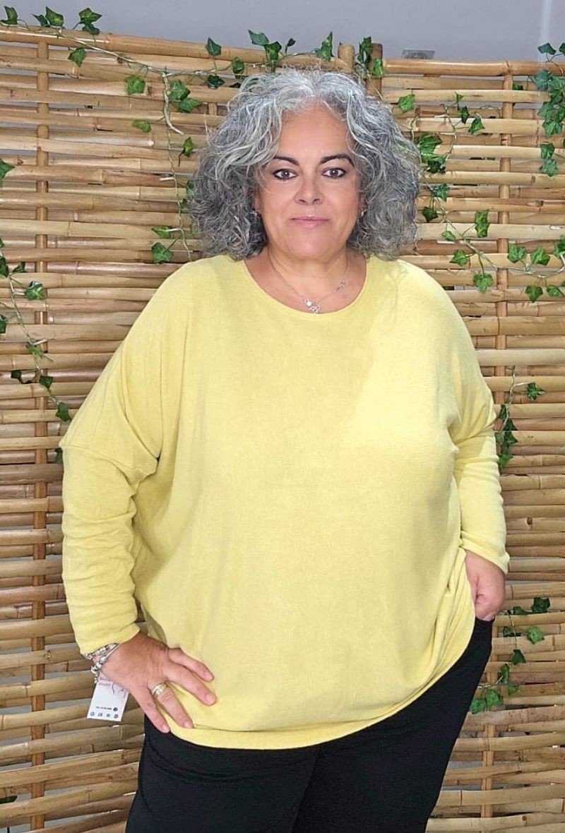 Jersey de punto liso con corte cuadrado y estilo oversize, cómodo, versátil y favorecedor.