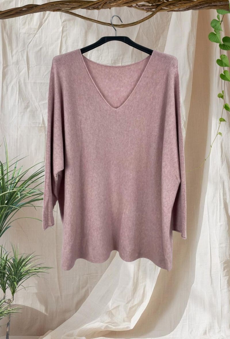 Jersey de punto muy suave, cuello en V y bajo redondeado, que aporta un toque favorecedor y moderno. Cómodo, ligero y adaptable a diferentes tallas.