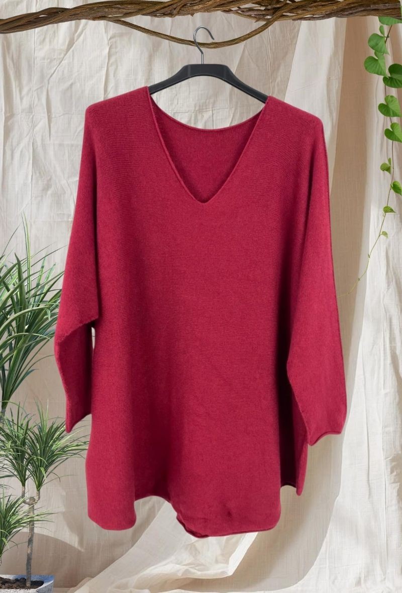 Jersey de punto muy suave, cuello en V y bajo redondeado, que aporta un toque favorecedor y moderno. Cómodo, ligero y adaptable a diferentes tallas.