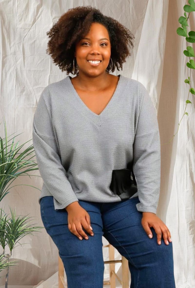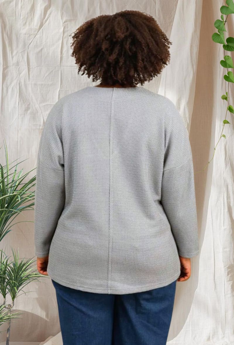 Sudadera de estilo bohemio, corte fluido, cuello en pico y mangas amplias. Lleva bolsillos delanteros con detalle de flecos que aportan un toque original y moderno