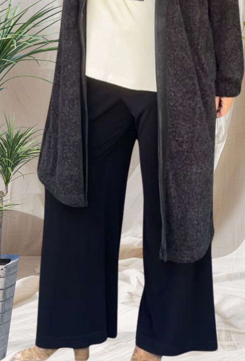 Pantalón de punto en viscosa, con 2 bolsillos y largo rectos. Mismo tejido ligero y cómodo que las camisetas, ideal para conjuntos a juego.