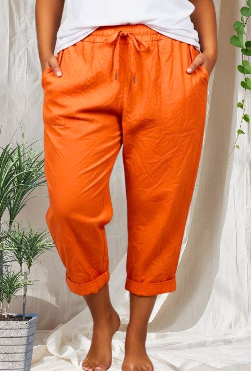 Pantalón de bengalina muy elástico, cómodo y adaptable. Diseño con cintura elástica y cordón ajustable, bolsillos laterales y bajo ligeramente remangado.  Favorece y se adapta sin marcar. Disponible en diferentes colores.