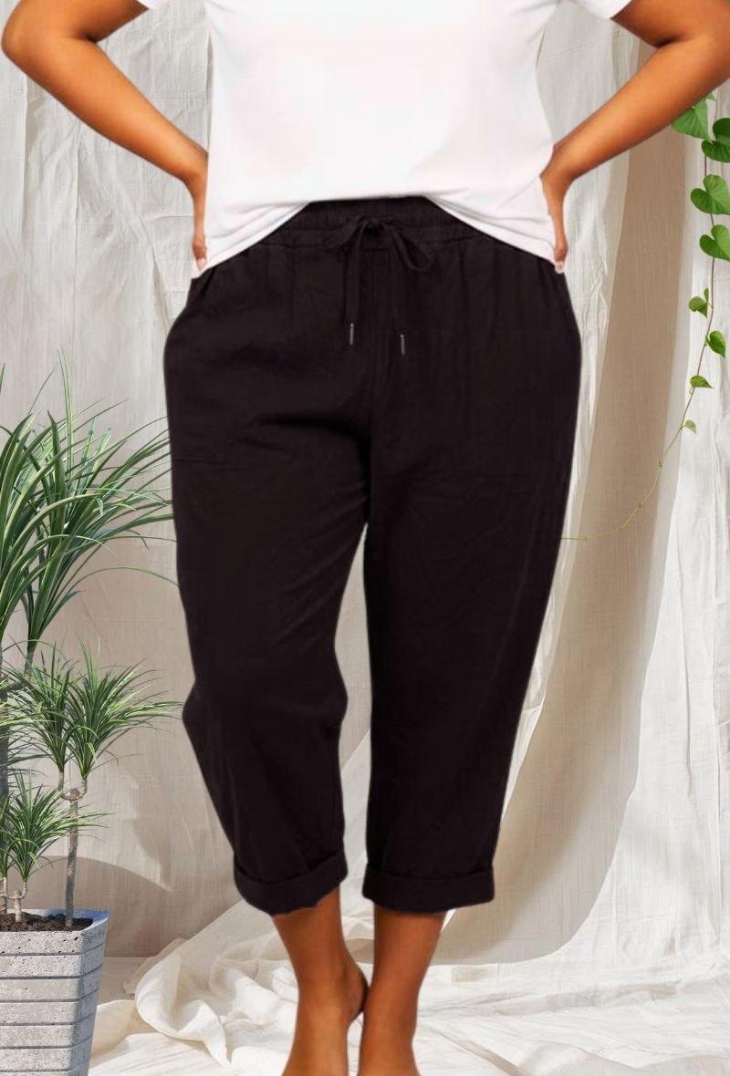 Pantalón de bengalina muy elástico, cómodo y adaptable. Diseño con cintura elástica y cordón ajustable, bolsillos laterales y bajo ligeramente remangado. Favorece y se adapta sin marcar. Disponible en diferentes colores.