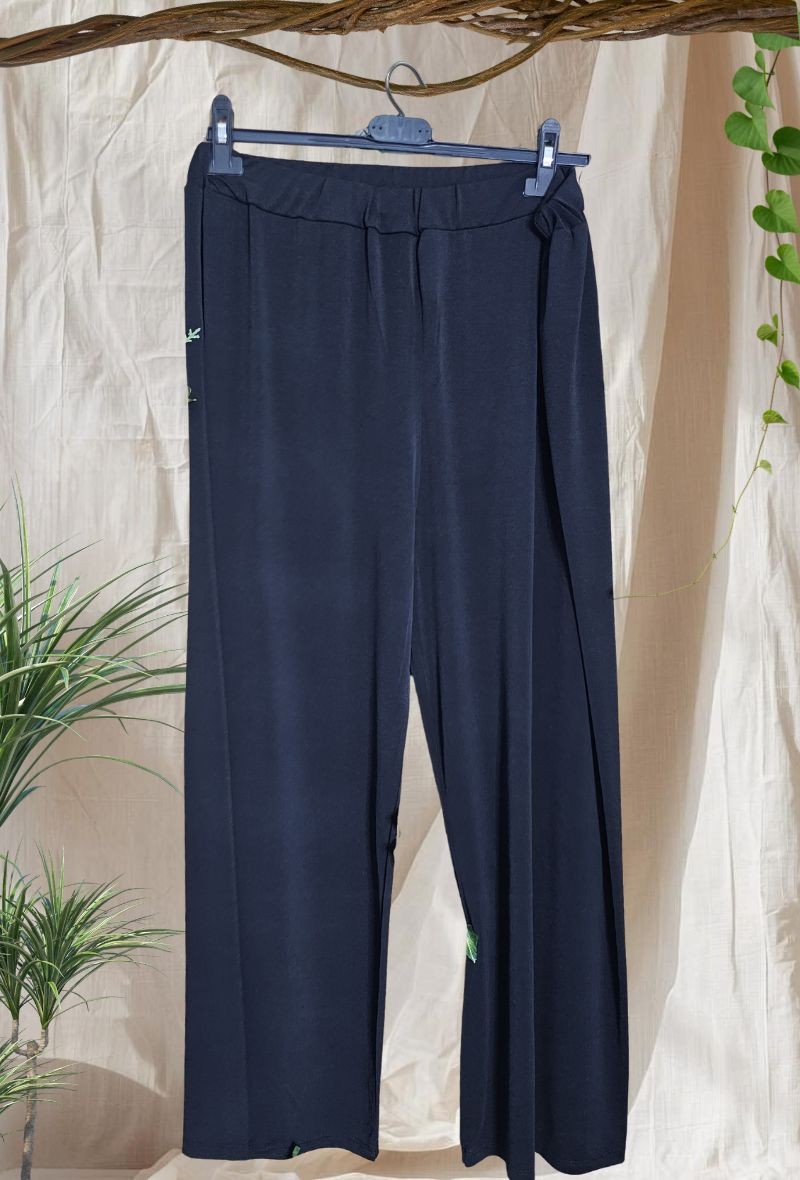 Pantalón de punto frío con caída fluida y tacto suave que no marca. Muy cómodo y ligero, ideal para el día a día o para looks más arreglados sin renunciar a la comodidad.