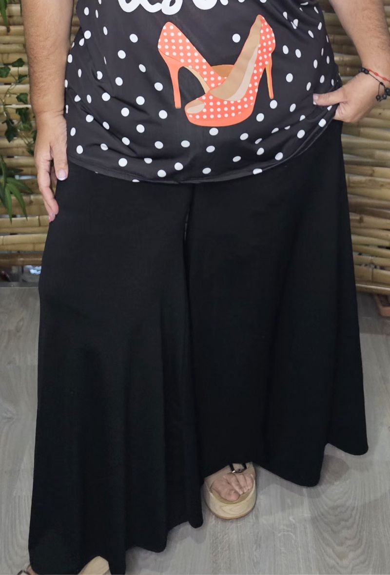 Pantalón de punto frío pierna acampanada con caída fluida y tacto suave que no marca. Muy cómodo y ligero, ideal para el día a día.