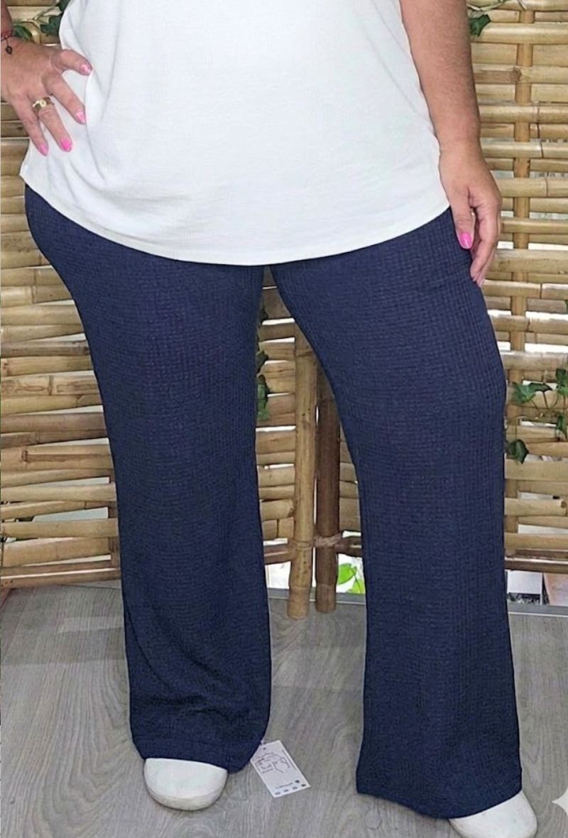 Pantalón de punto frío pierna acampanada con caída fluida y tacto suave que no marca. Muy cómodo y ligero, ideal para el día a día.