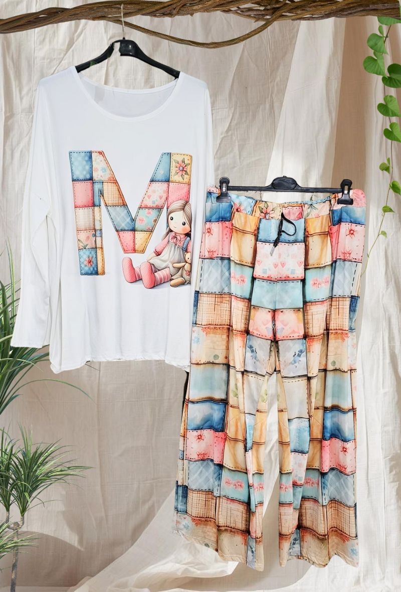 Pijama de tacto super suave, compuesto por pantalón largo y camiseta de manga larga con cuello redondo. Con estampados alegres y cómodos, es perfecto para descansar con estilo y comodidad.