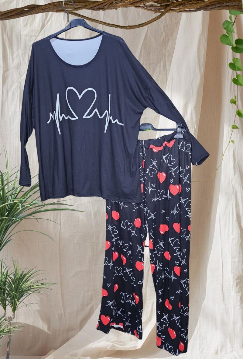 Este conjunto de pijama está disponible en dos tallas amplias y cómodas. Te recomendamos elegir según tu contorno para asegurar un ajuste perfecto.