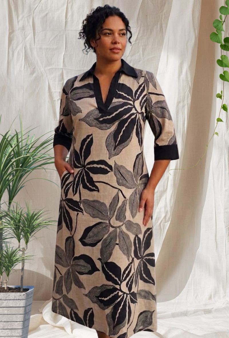 Vestido estampado de la marca Indra con corte suelto y fluido que estiliza sin marcar. Diseño cómodo y versátil, perfecto para el día a día o para un look más arreglado sin esfuerzo.